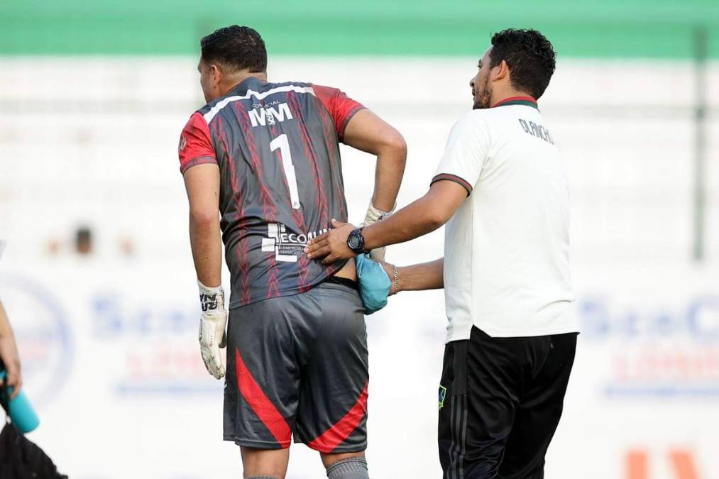 2 / 45El delantero colombiano del Marathón, Edis Ibargüen, salió lesionado y en camilla en el minuto 14 del partido contra los Potros del Olancho FC.