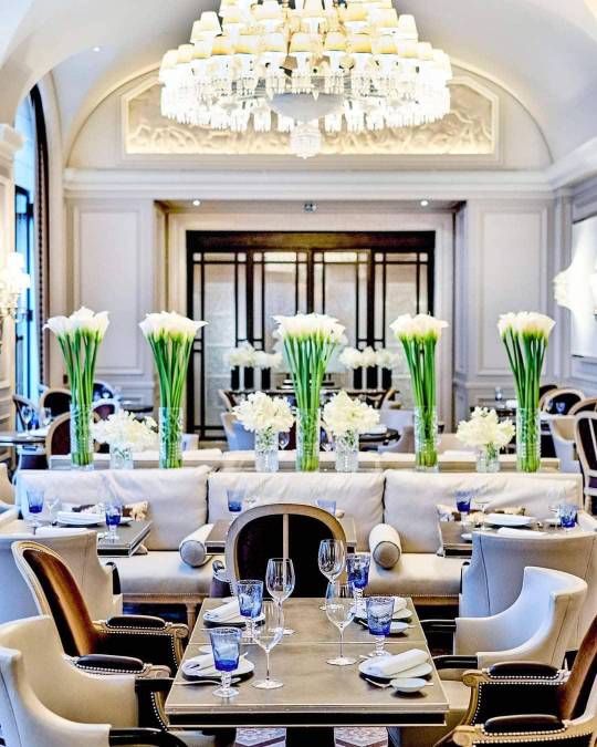 19 / 20El hotel tiene tres restaurantes –con cinco estrellas Michelin en conjunto– que ofrecen una de las mejores gastronomías de Francia. En el Le Cinq, cualquiera de los platos del menú Signature cuesta 350 euros, sin contar la bebida. En el Le George, el menú vegetariano o vegano asciende a 125 euros y otros platos por 70 euros. Mientras que el L’Orangerie, ofrece variedades de platos con verduras, frutas, además de langostas y otras alternativas que oscilan de 75 a 95 euros.
