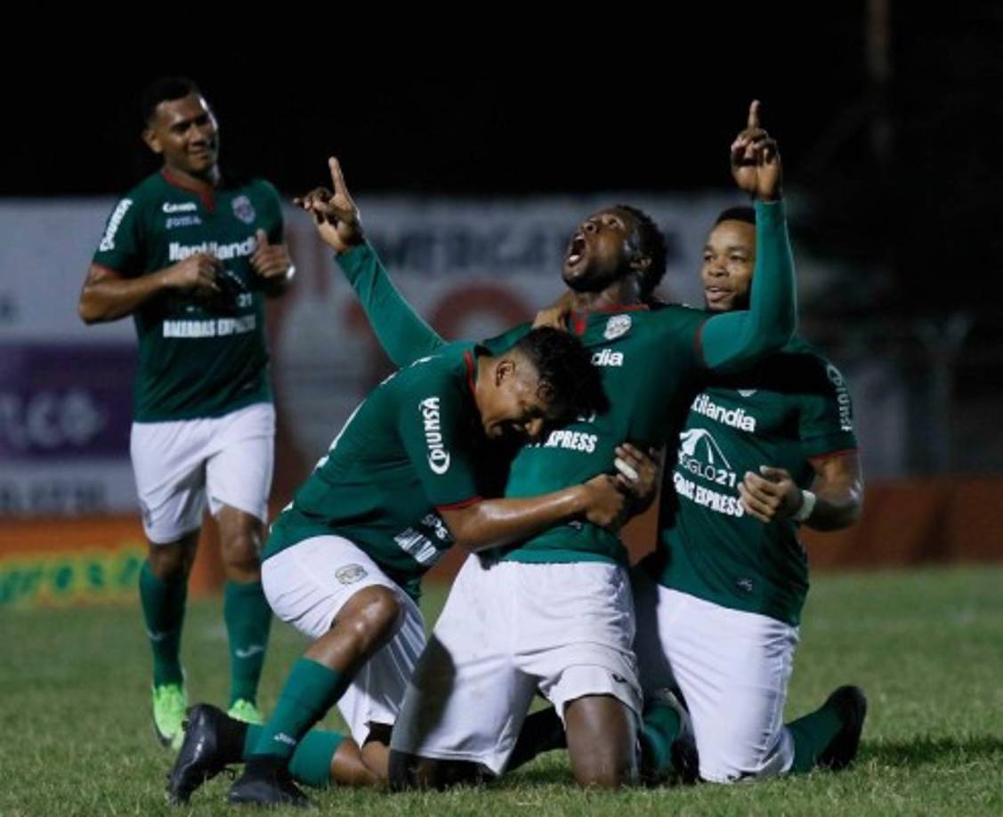 28 / 29Yustin Arboleda le dio la victoria al Marathón contra el Honduras Progreso. En la imagen, es felicitado por sus compañeros. -