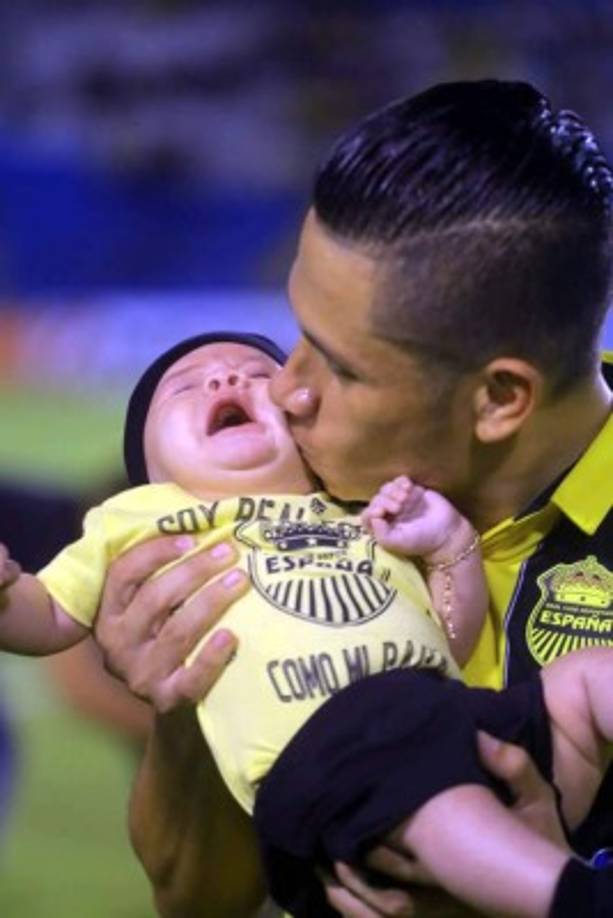 14 / 29Jairo Puerto dando un beso a su hijo prevoi al partido contra la UPN. -