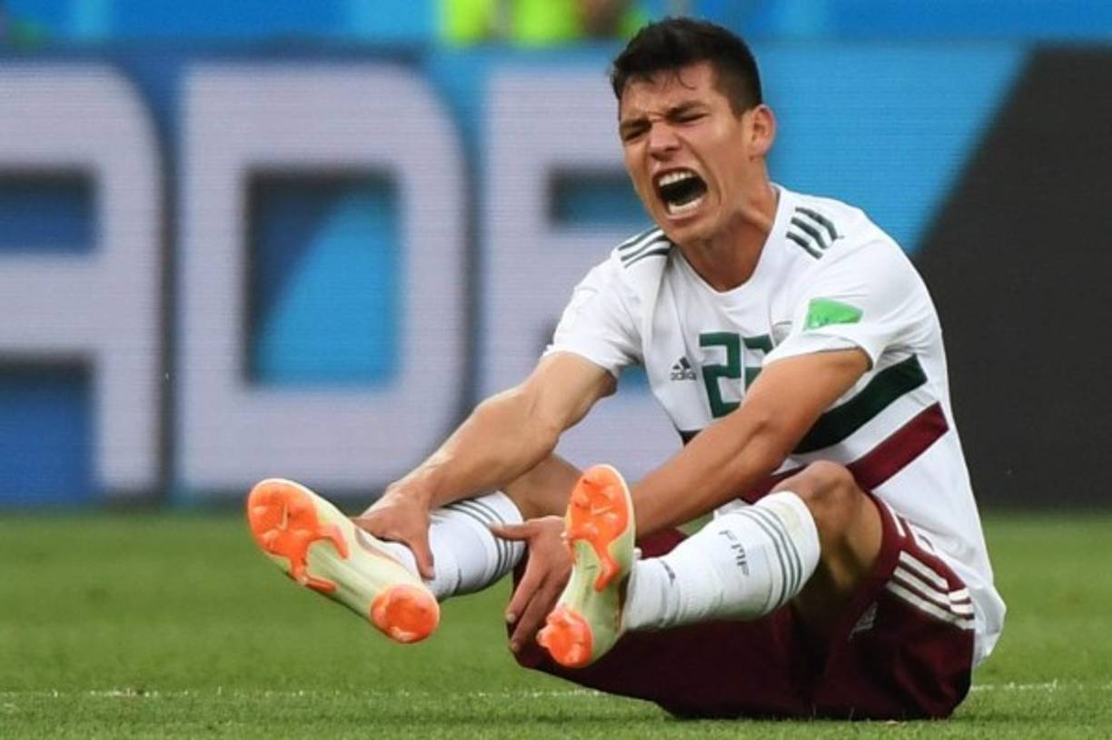 10 / 21Hirving Lozano hace gestos de dolor tras un patadón de un coreano. -