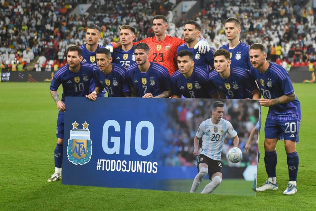 5 / 18Los jugadores argentinos tuvieron un gran gesto con Giovani Lo Celso, quien quedó fuera del Mundial tras sufrir una lesión con el Villarreal. Los seleccionados posaron para la foto grupal junto a un cartel en el que se pudo leer: “Gio, todos juntos”.