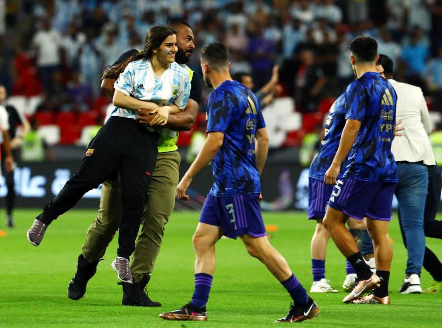 18 / 18Otro aficionado fue sacado en brazos por los miembros de seguridad. Locura por Messi en Abu Dabi.