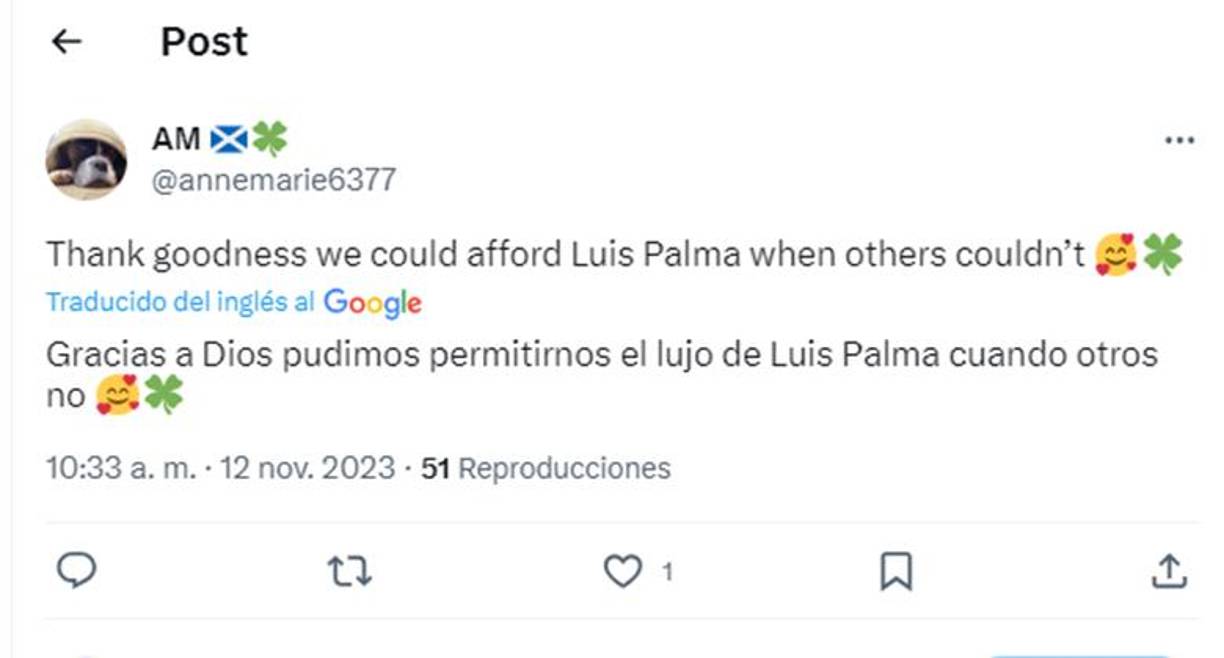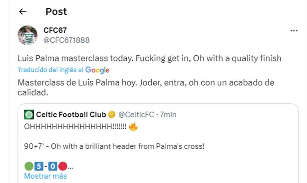 7 / 22”Luis Palma es demasiado bueno”, señaló un aficionado escocés del Celtic.