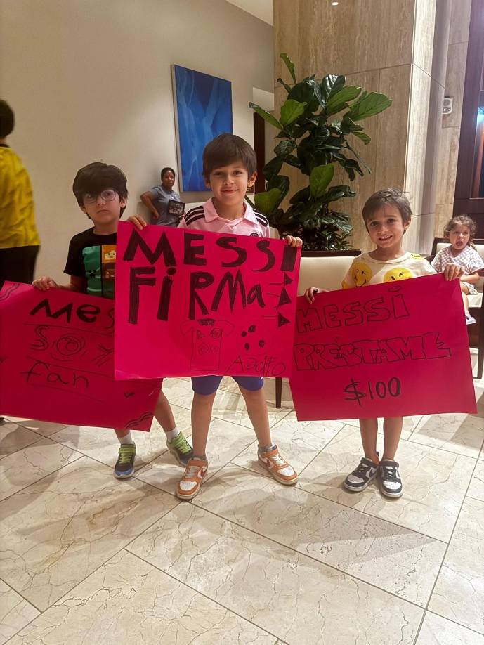24 / 24En el hotel de concentración del Inter Miami, varios niños también esperaban a Messi para conseguir una firma.