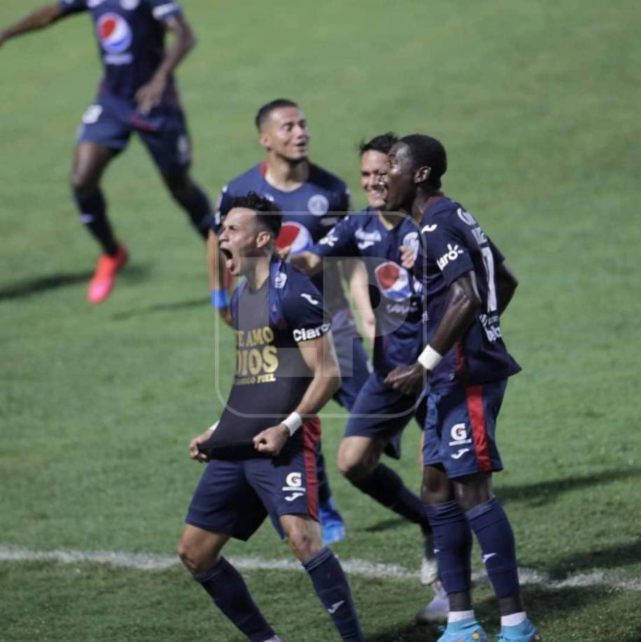 10 / 24Los jugadores del Motagua festejando el primer gol de la final.