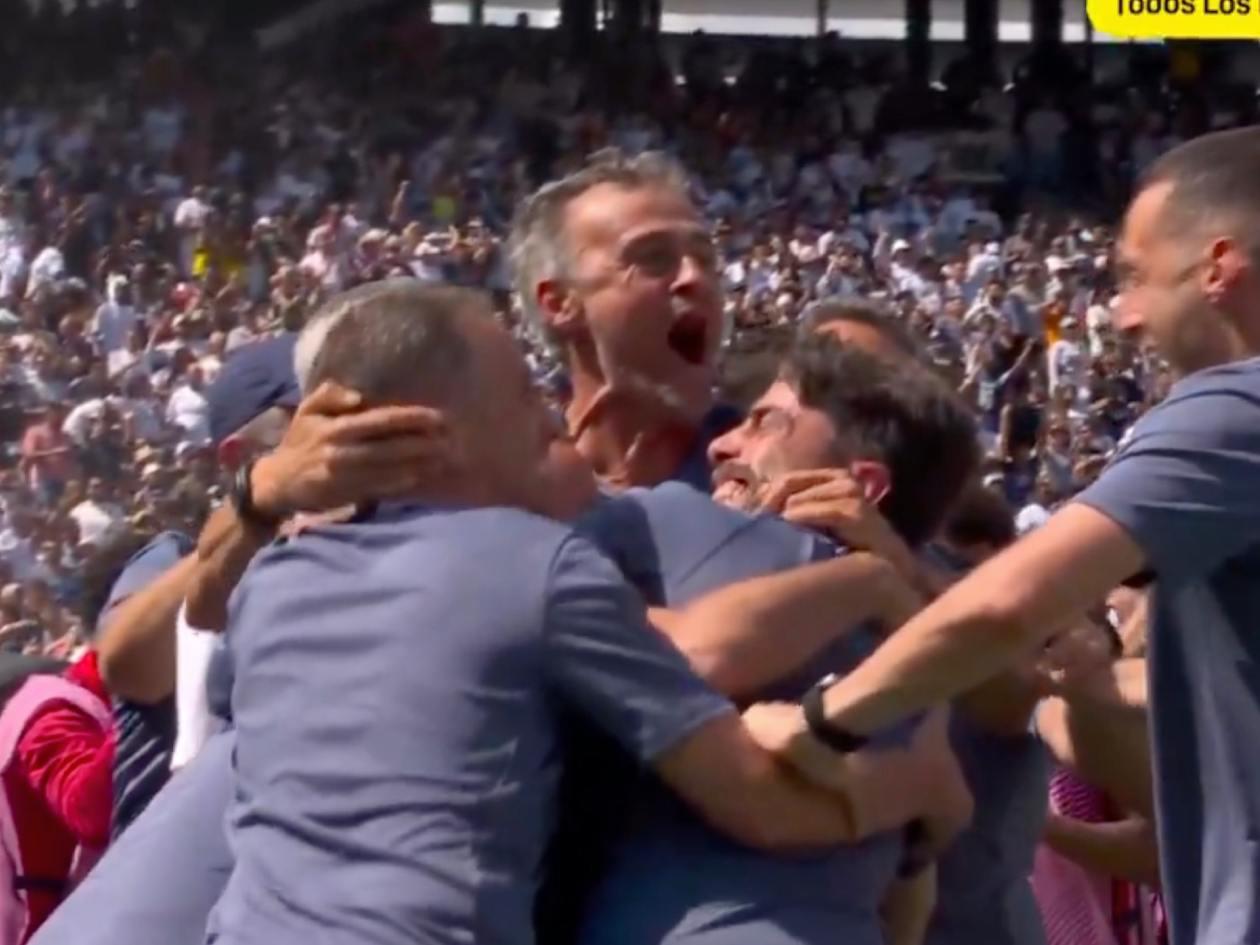 Luis Enrique y su cuerpo técnico celebraron con euforia el triunfo del PSG ante Real Madrid.