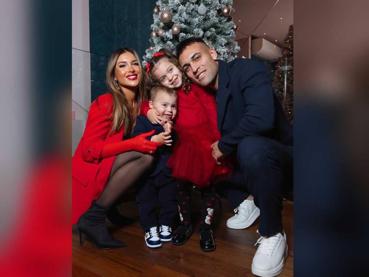 5 / 28Lautaro Martínez, delantero del Inter de Milán, posando con su esposa Agustina Gandolfo y sus hijos. Tiempo en familia.