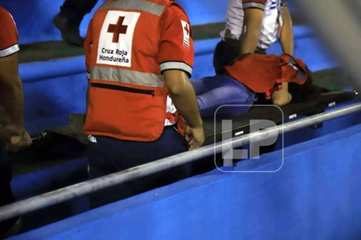 40 / 46La Cruz Roja Hondureña también tuvo trabajo, asistió a esta aficionada que se desmayó. -