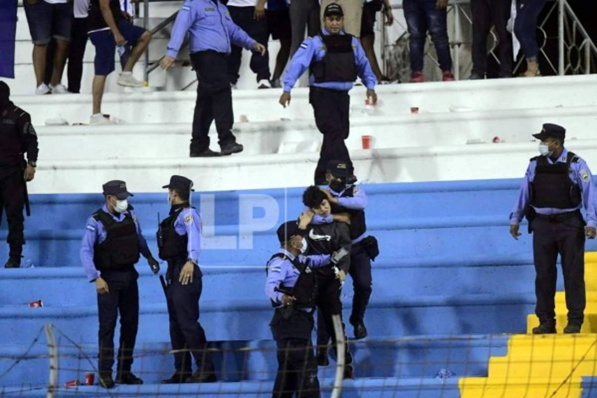 36 / 46Al final del partido, la derrota provocó relajos en las graderías del estadio Olímpico y la Policía Nacional tuvo que intervenir. -