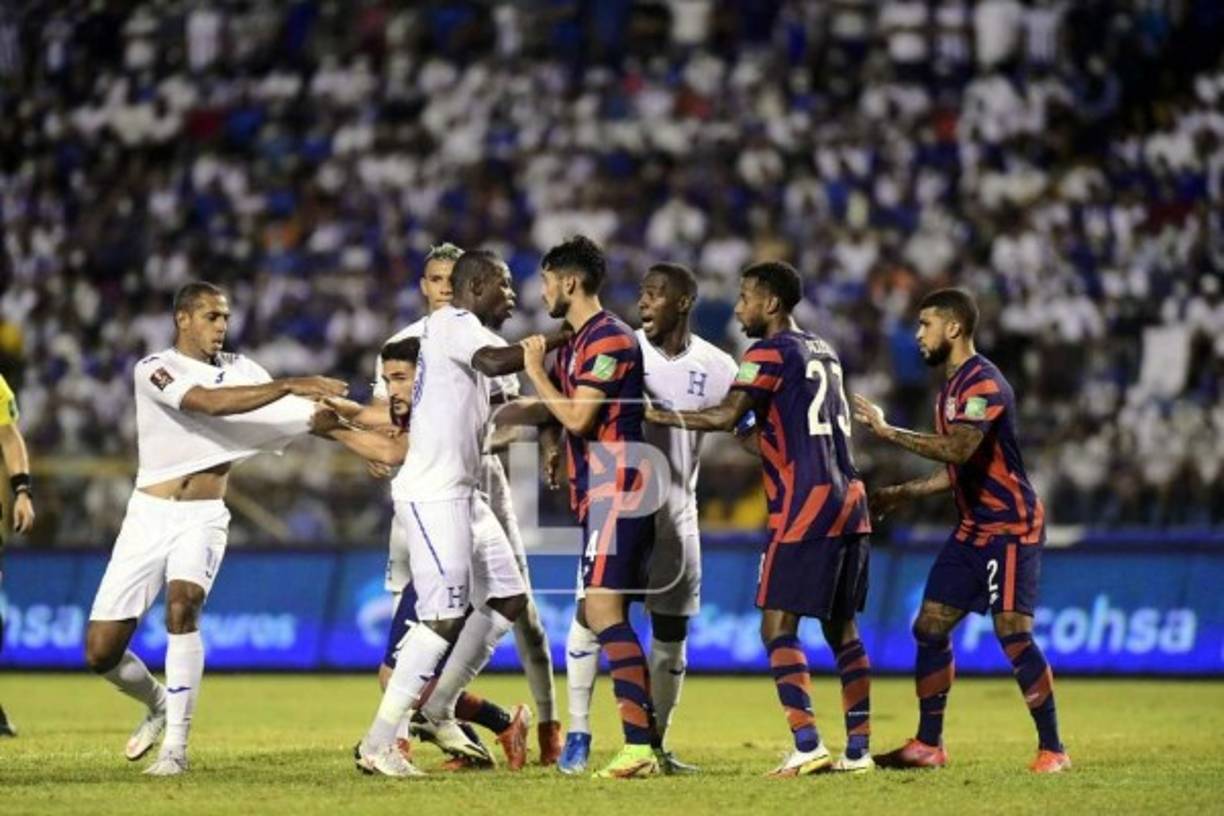 26 / 46Tremenda lucha entre hondureños y estadounidenses en un córner. -