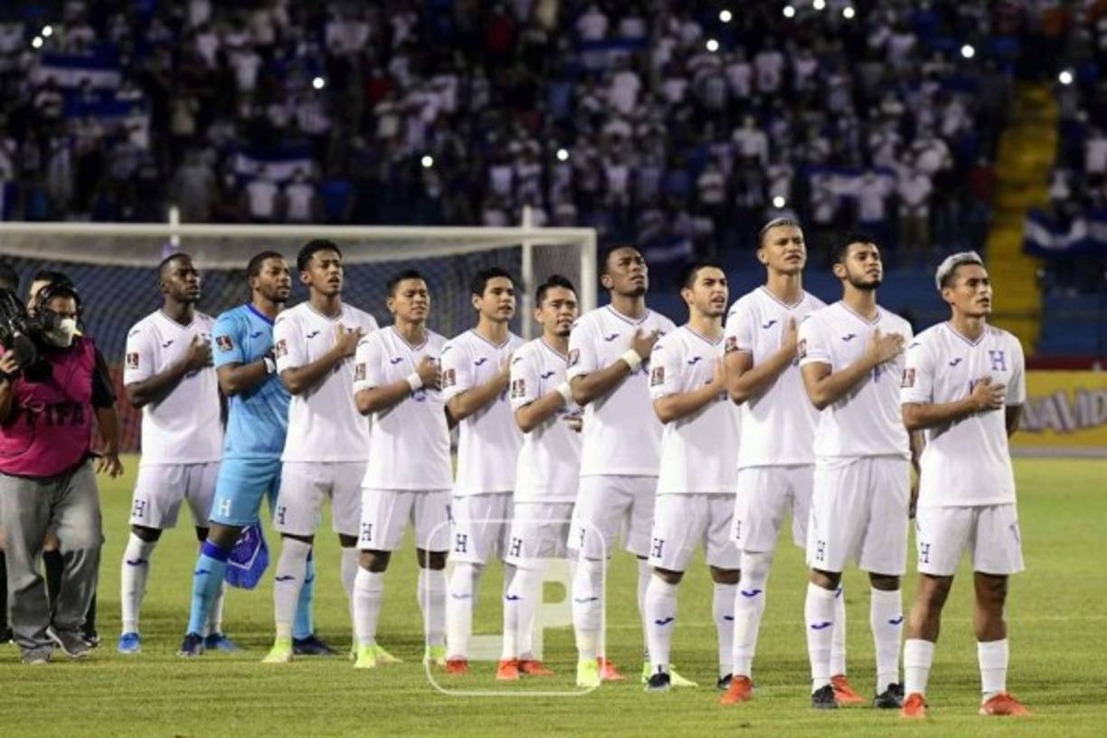 6 / 46Los seleccionados catrachos mientras entonan el himno nacional de Honduras. -