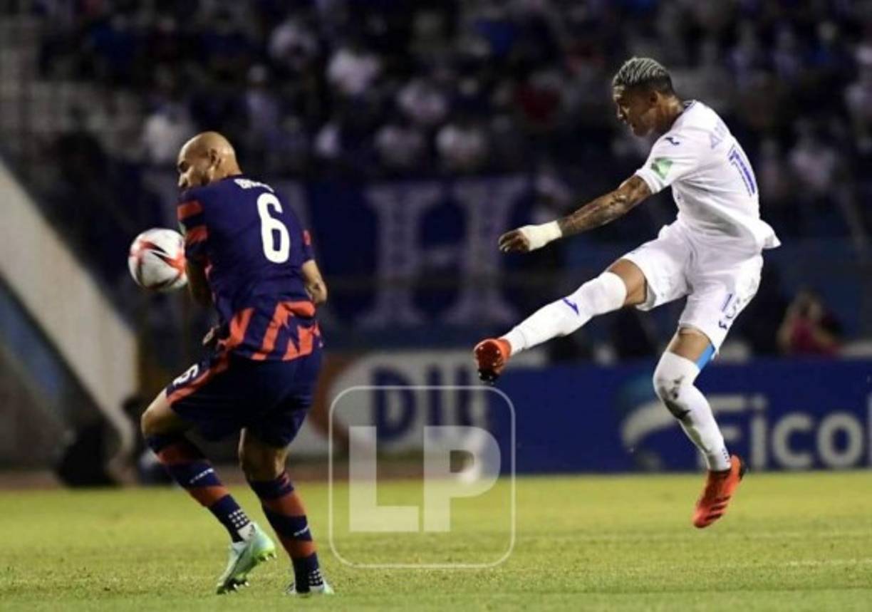 12 / 46El cabezazo a ras de pasto de Bryan Moya para poner a ganar a Honduras. -