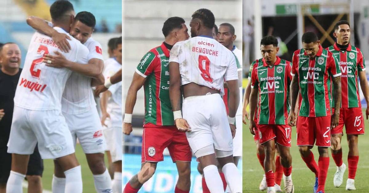 La tristeza de los jugadores del Marathón tras el gol de Emanuel Hernández.