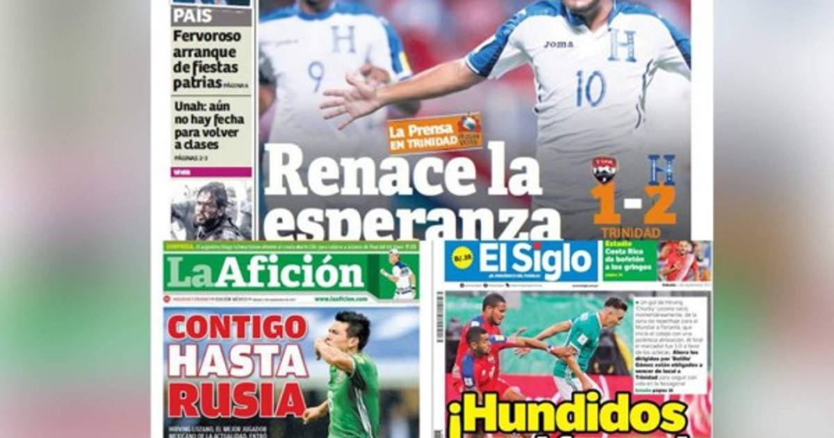 1 / 19Concacaf vibró el viernes con una intensa jornada de Concacaf en donde México selló su pase al Mundial, por su parte Costa Rica y Honduras ganaron y Panamá se encuentra en problemas y ahora sin opciones de repchaje. No te pierdas lo que dice la prensa escrita este sábado mediante sus portadas. -