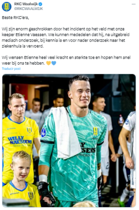 15 / 17“Estamos muy conmocionados por el incidente en el campo con nuestro portero Etienne Vaessen. Podemos anunciar que, después de un examen médico exhaustivo, está consciente y ha sido trasladado al hospital para un examen más detenido”, expresó el club.