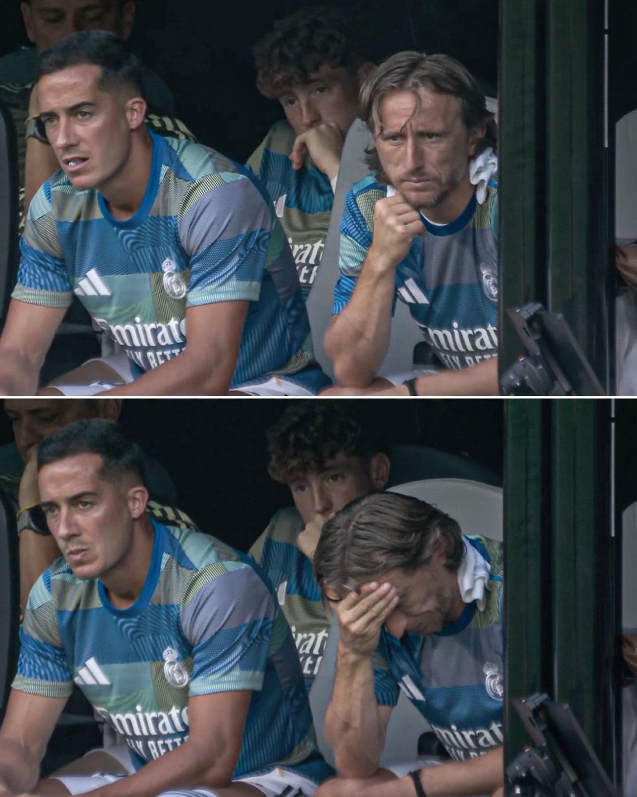 Lucas Vázquez y Luka Modric no podían creer lo que estaban viendo. Ambos jugaron su último partido con el Real Madrid, El croata entró al campo en el minuto 64 y el español en el 83. Los dos lo hicieron cuando el marcador ya iba 3-0 a favor del PSG, y antes de ingresar se les pudo ver con nerviosismo en el banquillo, mascando chicle y cara de circunstancias.