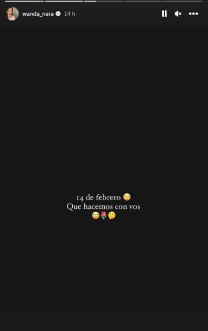 16 / 17Por su parte, Wanda Nara, expareja del futbolista Mauro Icardi compartió en sus redes sociales: “14 de febrero que hacemos con vos”, pero lo curioso fue el mensaje que recibió previamente.