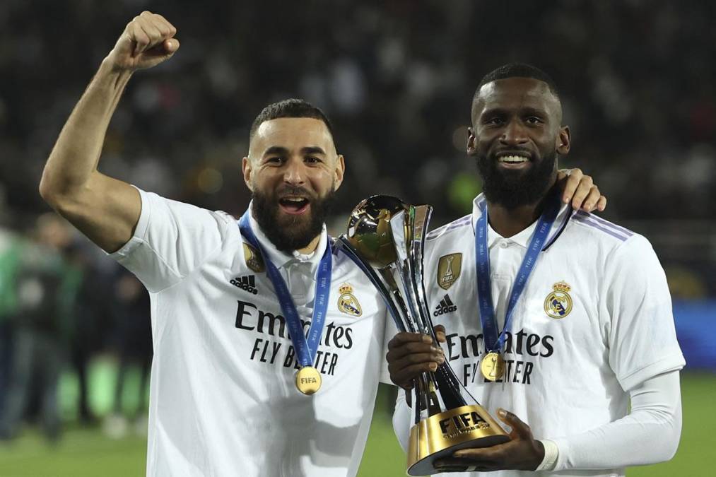 39 / 48Karim Benzema y Antonio Rüdiger celebrando con el trofeo de campeones.