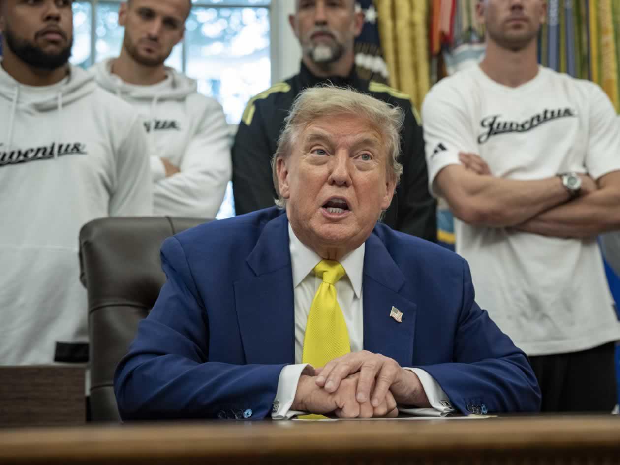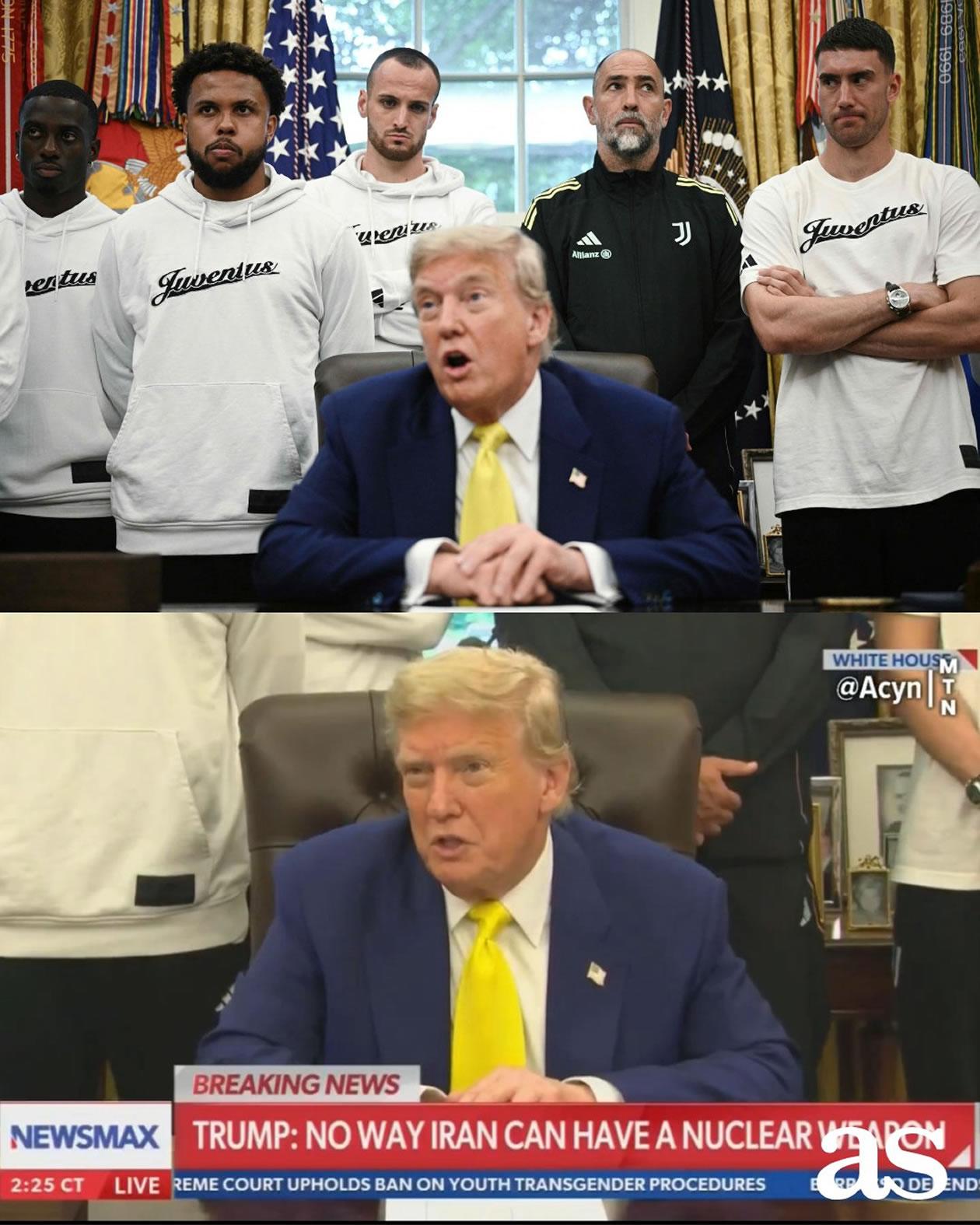 No fue la única imagen que dejó el curioso encuentro, pues Trump abordó la guerra entre Irán e Israel y dijo que no había tomado una decisión sobre si Estados Unidos atacará a Irán. Todo con los jugadores de la 'Juve' de fondo, serios ante la situación.