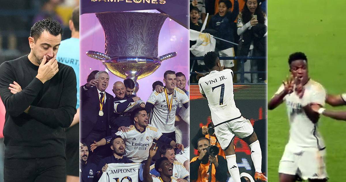 1 / 42Las imágenes que nos dejó la goleada del Real Madrid (4-1) al FC Barcelona para ser campeón de la Supercopa de España 2024 con un Vinicius protagonista marcando un hat-trick y dedicando un polémico gesto al banquillo azulgrana. Lo que hizo Xavi tampoco ha gustado.