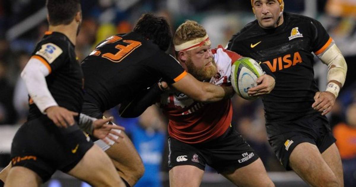 1 / 6RUGBY. Pelea por el balón. El holandés Akker van der Merwe (centro), de los Leones, compite por el balón con Matías Orlando (2º-izquierda), de Jaguares, durante su partido de Super Rugby celebrado en el estadio José Amalfitani en Buenos Aires, Argentina. -