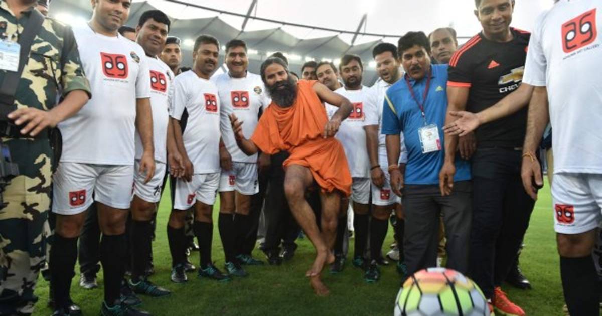 1 / 6FÚTBOL. El gurú del fútbol. El gurú de yoga indio Baba Ramdev realiza el saque antes de un partido benéfico entre los actores indios de Bollywood y los parlamentarios de la India en Nueva Delhi. El evento forma parte de la campaña Clean India. Fotos: AFP -