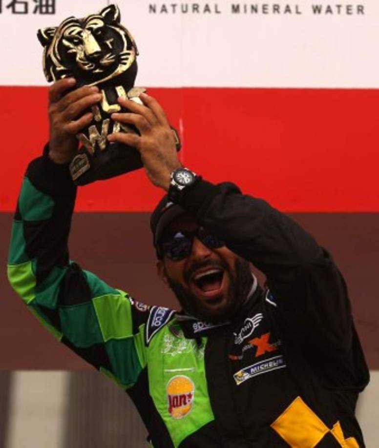 2 / 6RALLY. Un ganador extremo. El piloto del Peugeot Sport, Cyril Despres, cinco veces campeón del Dakar en motos, celebra su su victoria en el podio del Silk Way Rally en Beijing. -