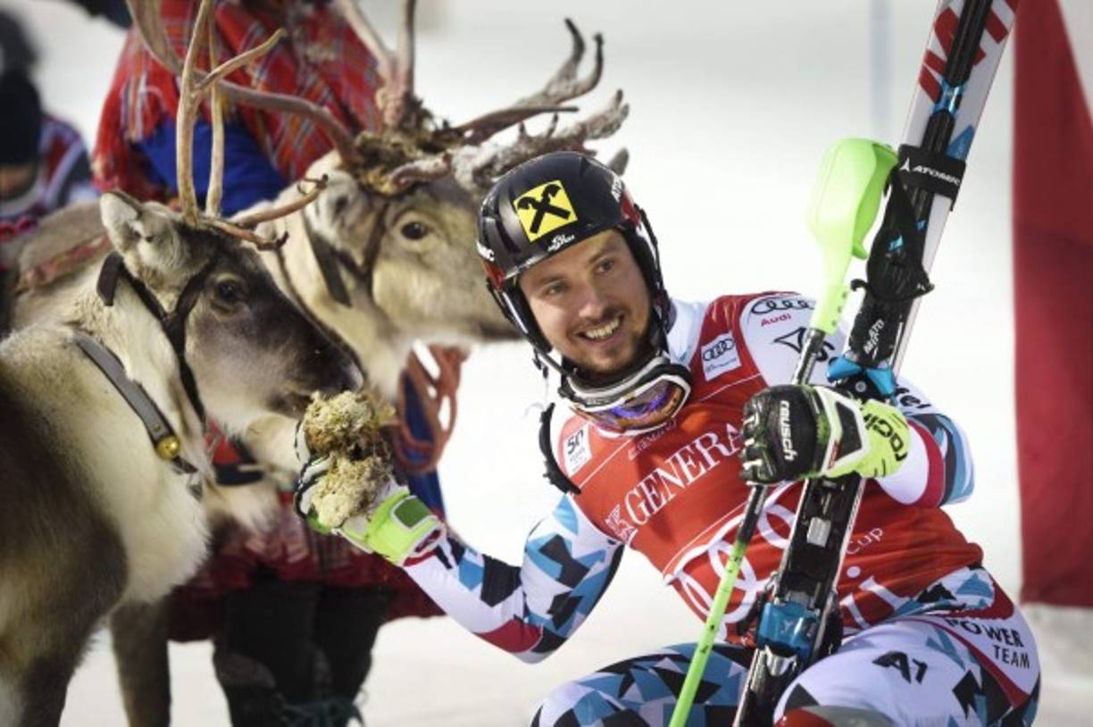 3 / 6ESQUÍ. Llamativa celebración. Marcel Hirscher posa con su trofeo y un reno, después de la carrera de slalom de la Copa del Mundo de esquí alpino en Finlandia. Foto: AFP/Lehtikuva/Martti Kainulainen -