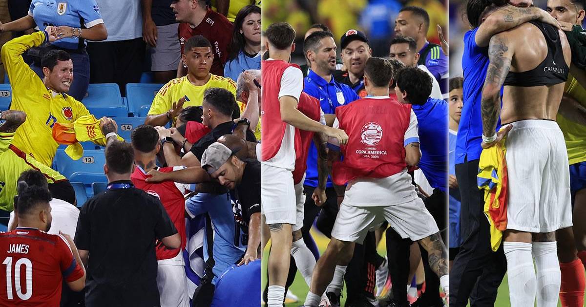 Golpes, patadas, lanzamientos de objetos y una terrible batalla campal al final del Uruguay-Colombia.