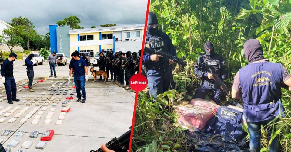 1 / 10120 paquetes de supuesta cocaína decomisó la Policía Nacional en una hacienda en Iriona, Colón.