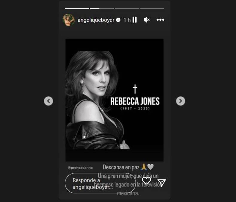 3 / 12Angelique Boyer mencionó que Rebecca Jones “fue una gran mujer” y que “deja un hermoso legado en la televisión mexicana”.