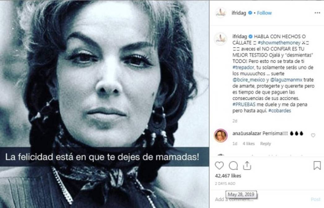En ese momento, la hija de Alejandra Guzmán comentó la publicación de esta manera: “Si se te olvidó, tengo Instagram @ifridag, y sé que te molesta, pero ni te apellidas Pinal. Extraño a Mich, la que creció conmigo. Qué lástima... siempre serás la ‘hermana mayor que nunca tuve’, pero se te mega subieron los humos. Estaré aquí cuando se te bajen un poquito como para considerarme”.