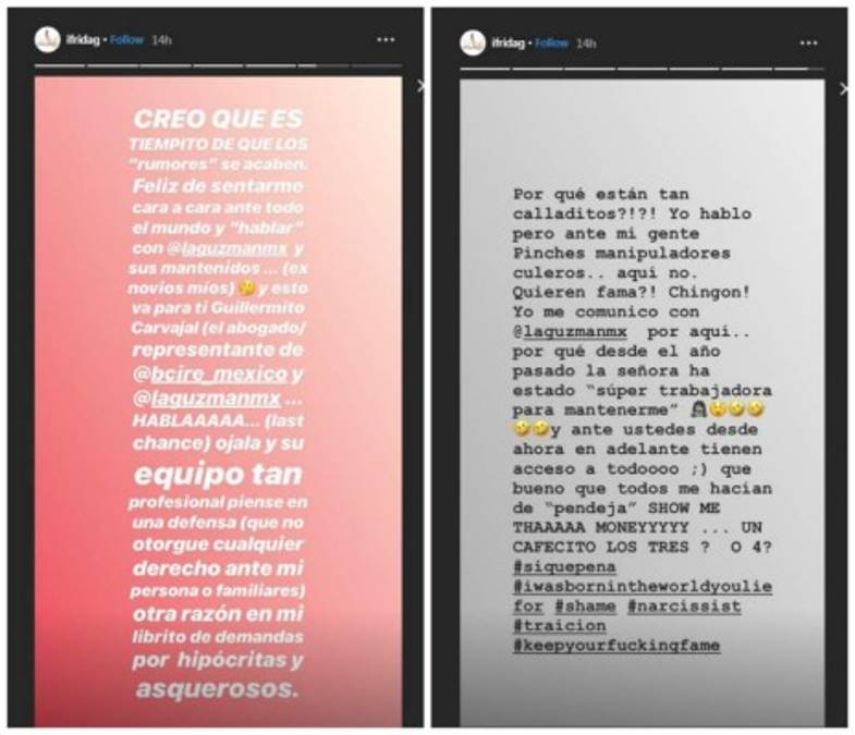 'Un día me regala 8 pares de zapatos carísimos... y al otro día me corre y me deja sin tarjetas, sin dinero, sin nada', todo esto según Frida a los 16 años!, pero sus palabras no concuerdan con las evidencias que hay en las redes sociales de ella y las de Guzmán. -