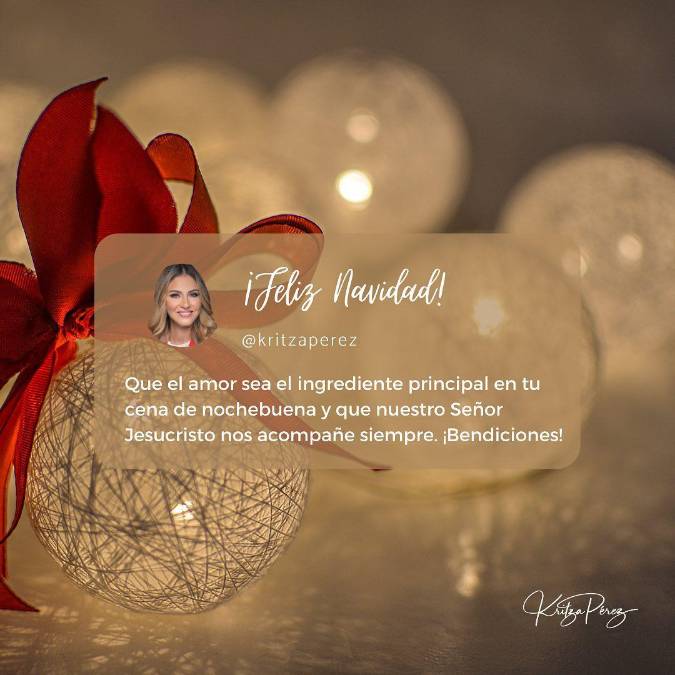 10 / 12La virtual diputada al Congreso Nacional y presentadora del programa Las Mañanas del 5, Kritza Pérez, deseó a los hondureños “que el amor sea el ingrediente principal en tu cena de Nochebuena y que nuestro señor Jesucristo nos acompañe siempre. ¡Bendiciones!”, externó. -