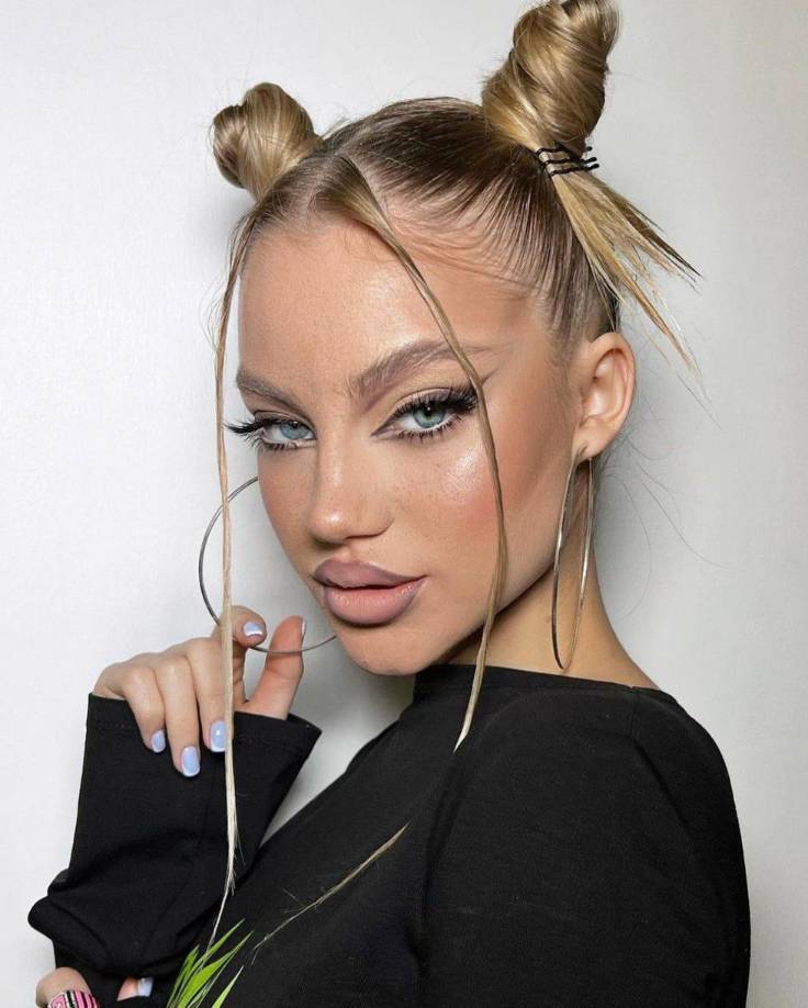 13 / 17Los peinados con moños se llevan en pares, con mechones sueltos.