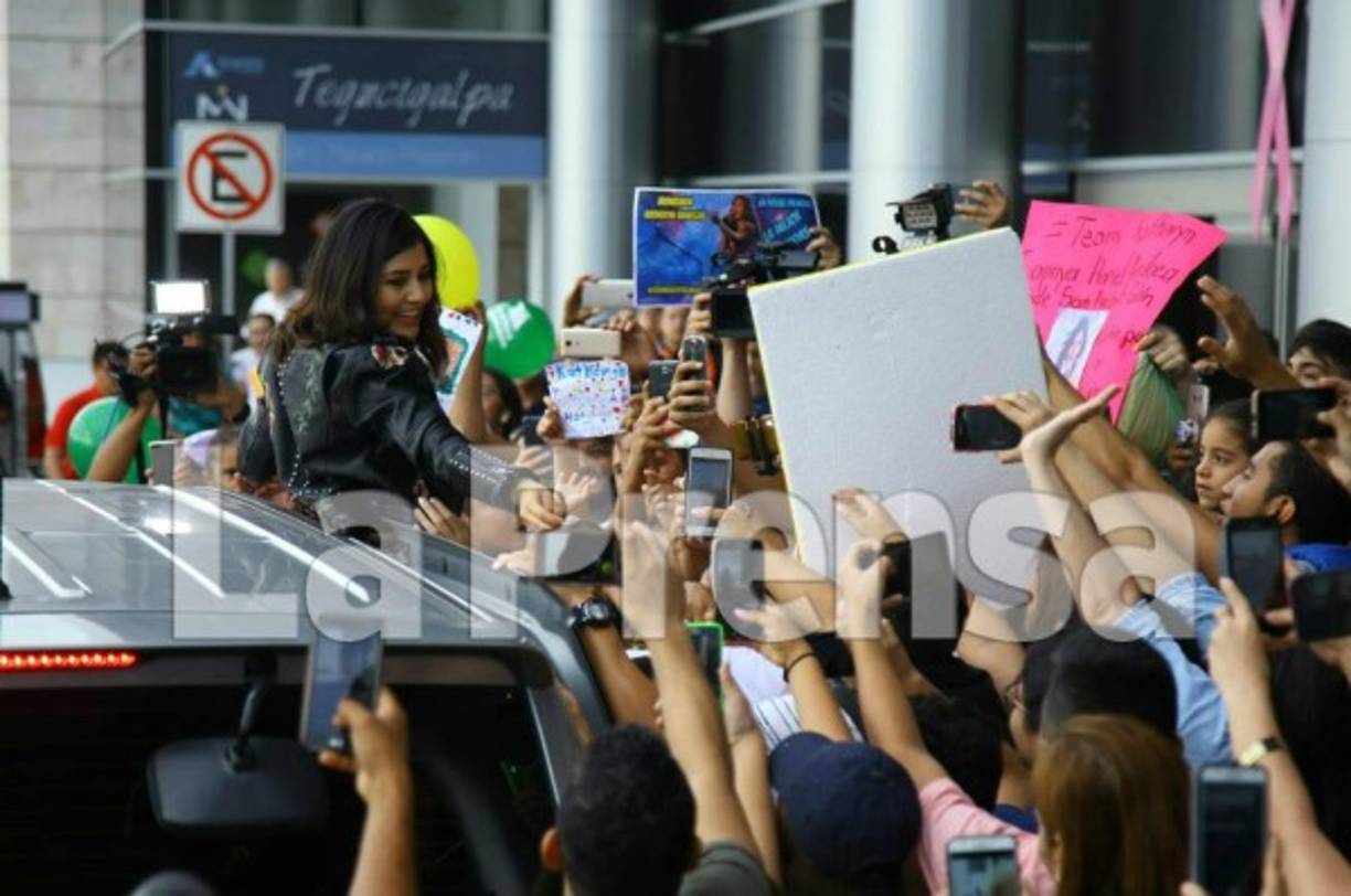 La cantante hondureña llegó al país y fue ovacionada por cientos de catrachos.