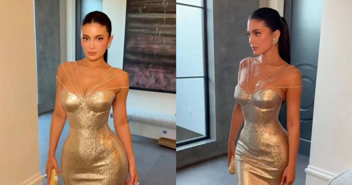Kylie Jenner sorprende con un vestido dorado en los Globos de Oro 2026