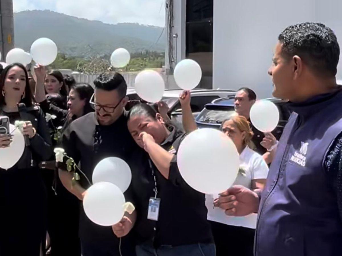 Posteriormente, le dieron un recorrido por las principales calles de Tegucigalpa, pasando por las instalaciones de su trabajo en TV Azteca, donde sus compañeros la esperaban con llanto y globos blancos.