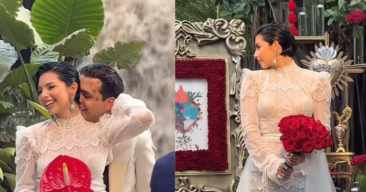 Las nuevas fotografías muestran detalles de la íntimo enlace nupcial entre Christian Nodal y Ángela Aguilar.