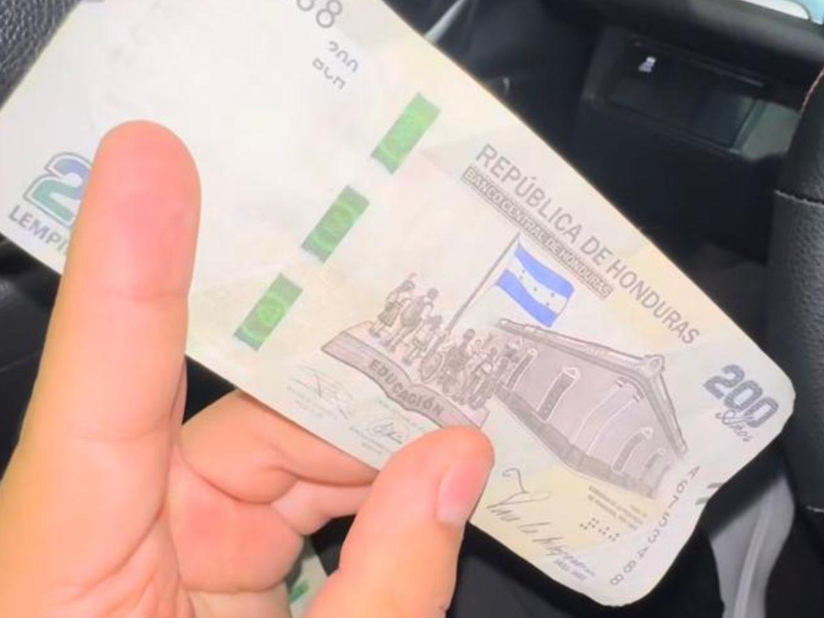 Según relató, recibió un billete de 200 lempiras falso en una reconocida pizzería, y posteriormente, al intentar utilizarlo en una gasolinera, le fue rechazado por ser falso.