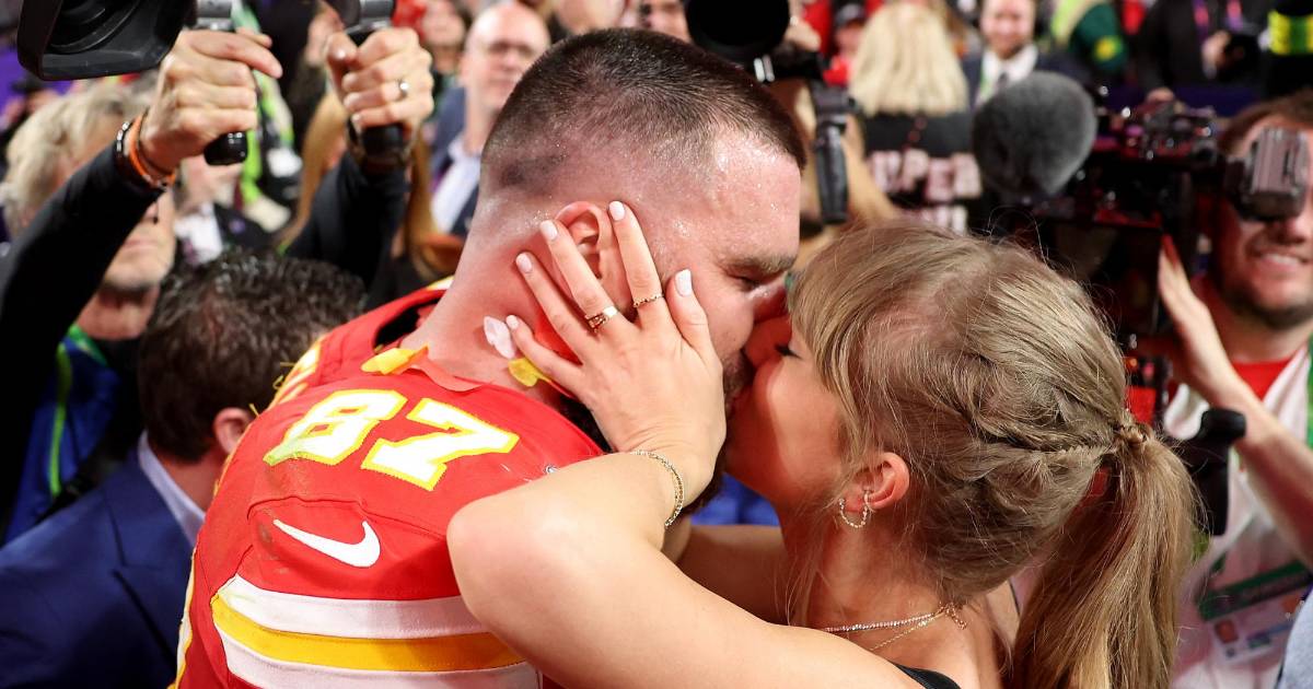 Taylor Swift y Travis Kelce derrochan amor tras finalizar el Super Bowl