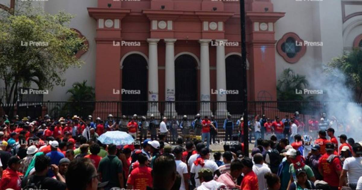 FOTOS: Ni la catedral se salvó de los reclamos de trabajadores sampedranos