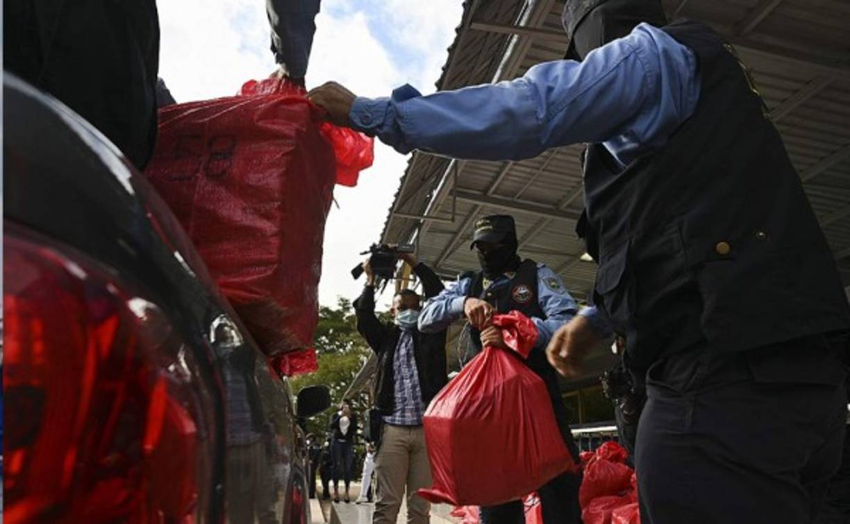 4 / 9Policías custodian bolsas de aparente cocaína en Tegucigalpa. Foto AFP -