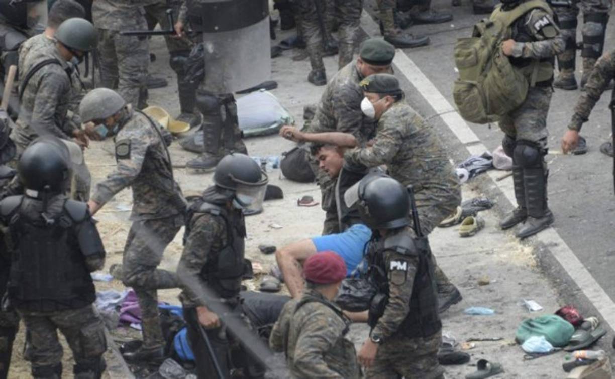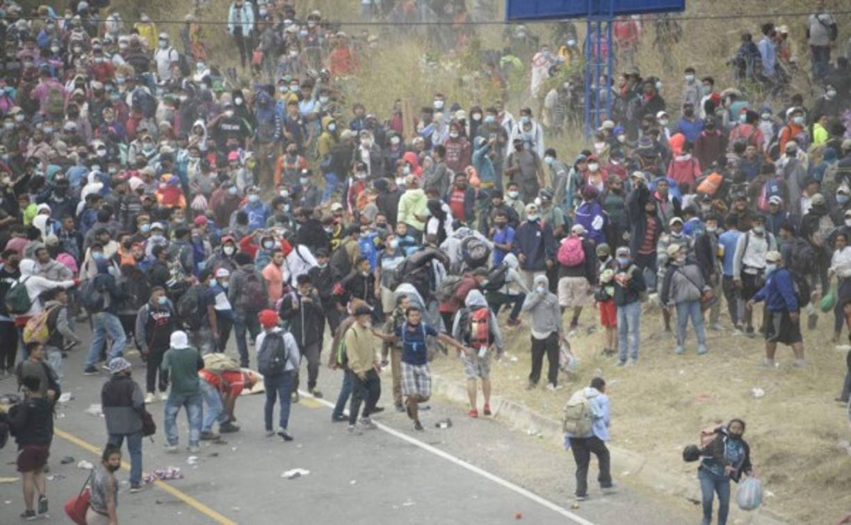 Gritos de desesperación, empujones y gas lacrimógeno entre caravana migrante y barrera policial de Guatemala