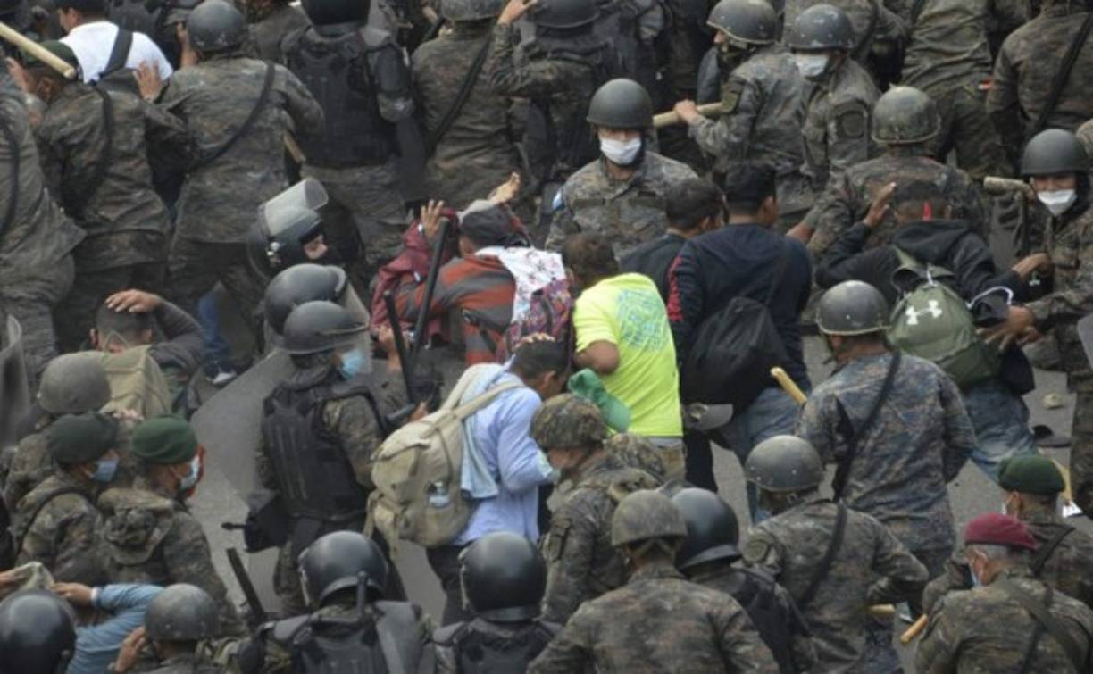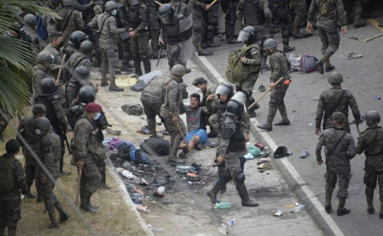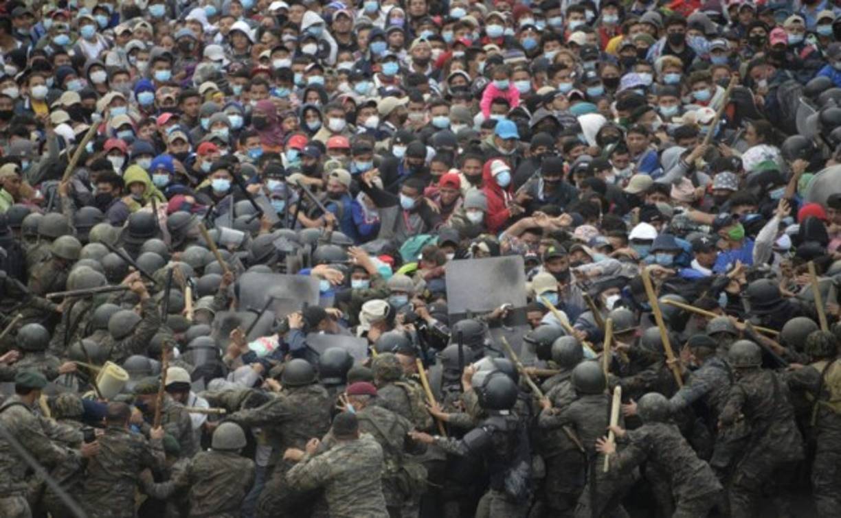 13 / 13Sin embargo, las fuerzas de seguridad guatemaltecas continúan con sus intentos de detener a la multitud. Foto AFP