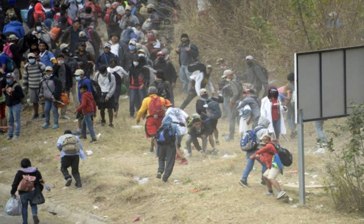 5 / 13Las autoridades de Guatemala argumentaron que los migrantes insistían en avanzar, fue por eso que usaron gas lacrimógeno. Foto AFP -