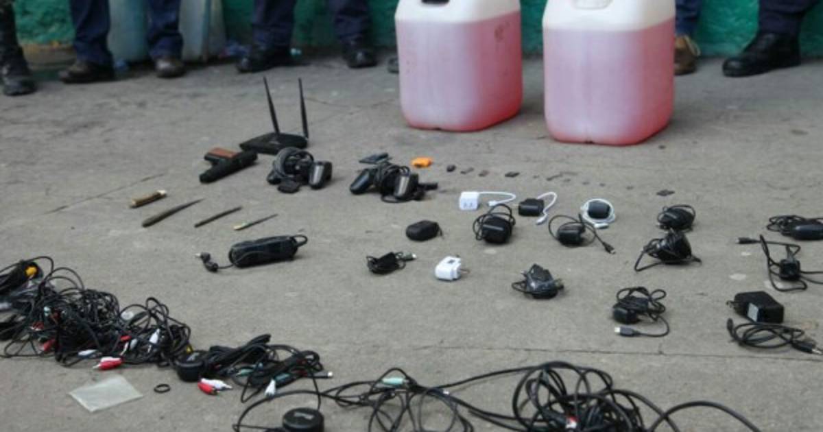 4 / 7Se halló una pistola de balines, un router, once memorias usb, dos tambos de combustible, un cargador de computadora y seis armas cortopunzantes.