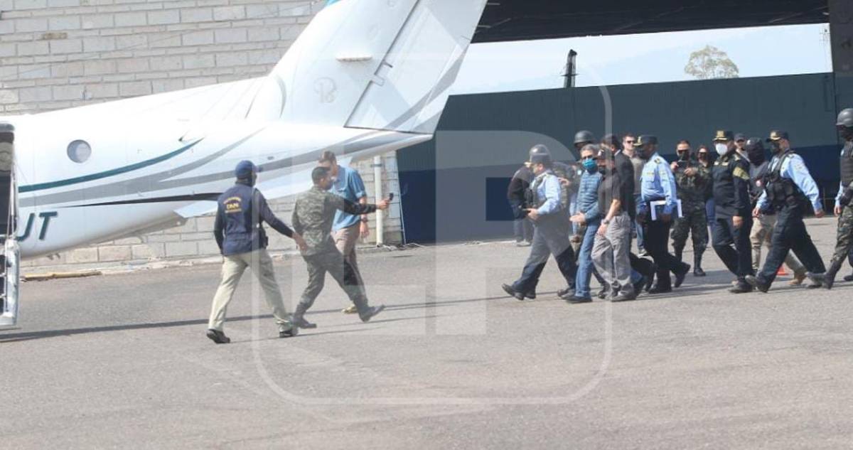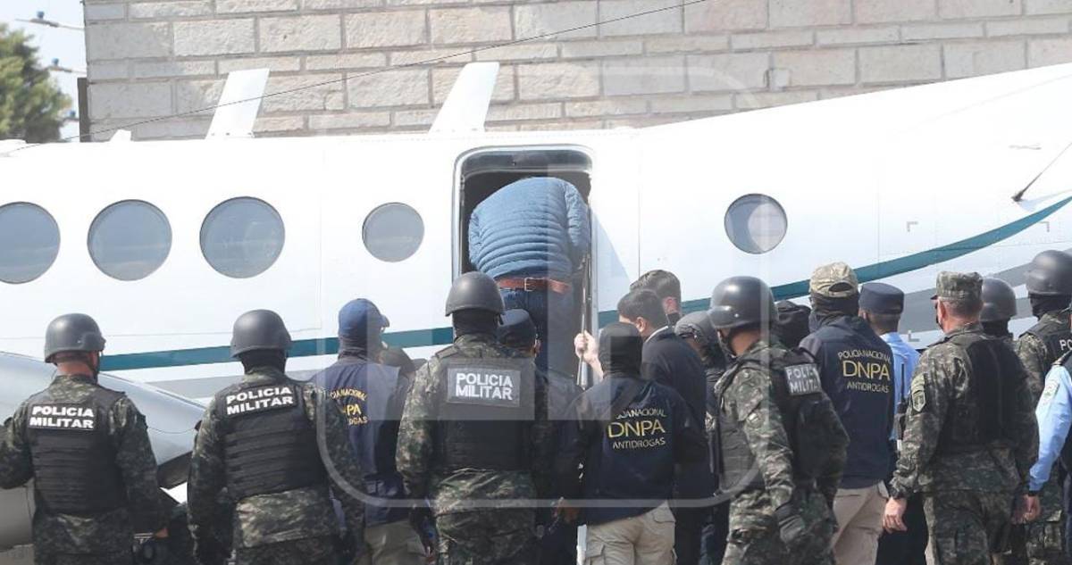 Juan Orlando Hernández fue entregado a integrantes de la Agencia Antidrogas de Estados Unidos (DEA) en la Base Aérea Hernán Acosta Mejía, a la que fue llevado desde una instalación policial en un helicóptero de la Fuerza Aérea Hondureña (FAH), por el ministro de Seguridad, Ramón Sabillón.