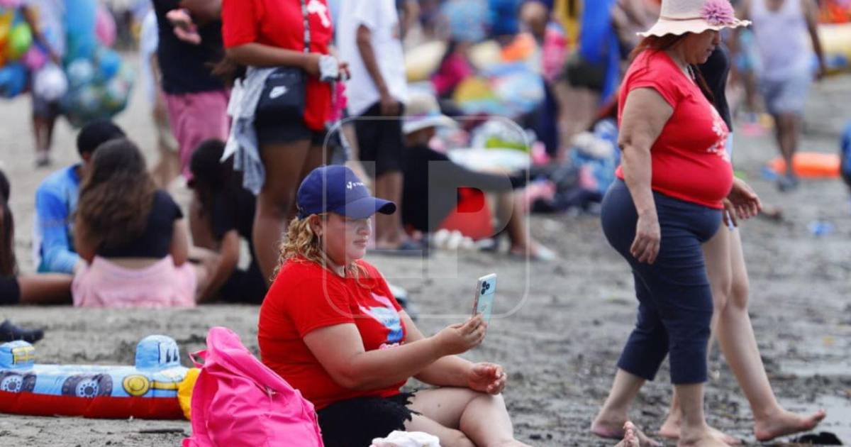 Familias se instalaron desde temprano en la arena para compartir y disfrutar del ambiente playero en Puerto Cortés.